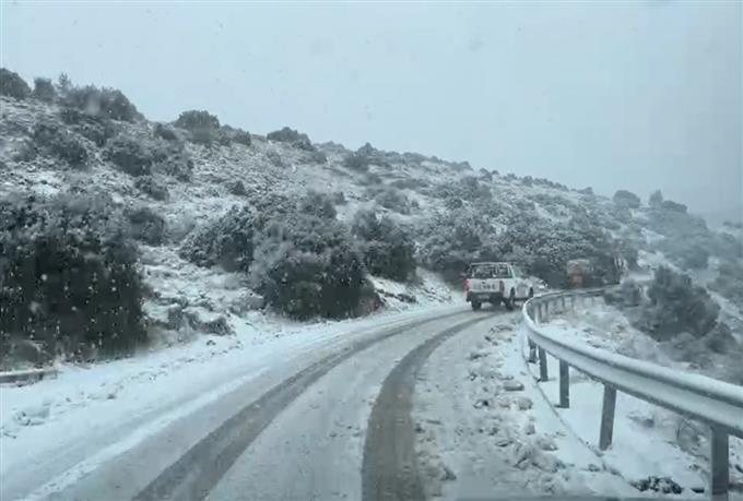 Εγκλωβισμένοι στο αυτοκίνητό τους λόγω της χιονόπτωσης από την κακοκαιρία Avgi παραμένουν τρία άτομα
