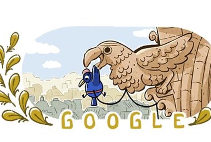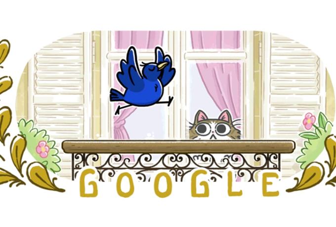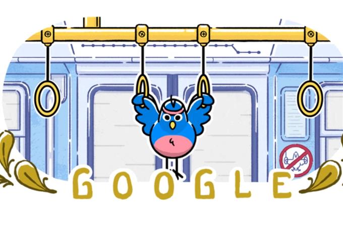 Στο Google Doodle εμφανίζεται ένα μπλε πουλί να πραγματοποιεί αριστοτεχνικά φιγούρες πάνω στο κάγκελο