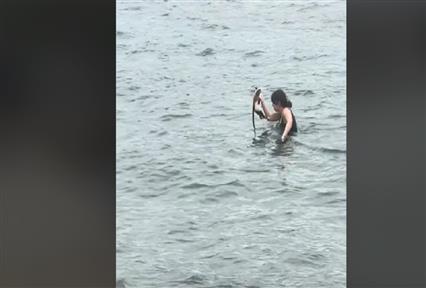 Σύμφωνα με αυτόπτη μάρτυρα, έριξε με δύναμη στο οδόστρωμα το ζώο, το οποίο κρατούσε στο χέρι του, με αποτέλεσμα να το τραυματίσει θανάσιμα