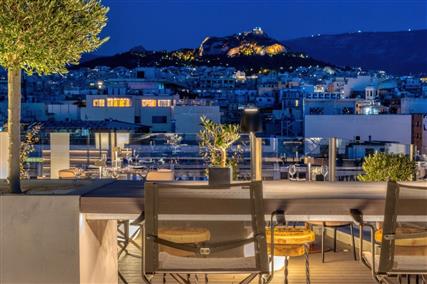 Στο 9ο όροφο του εμβληματικού ξενοδοχείου της Πλατείας Καραϊσκάκη τα απολαυστικά πιάτα του σεφ Κώστα Φιλιππόπουλου συνοδεύονται από μια αφ’ υψηλού άποψη της Αθήνας -με την Ακρόπολη και τον Λυκαβηττό να κλέβουν το μάτι.