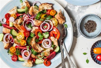 Ένα πιάτο που εκμεταλλευόταν την αφθονία των μεσογειακών λαχανικών και τα περισσεύματα του ψωμιού εμπνέει για δροσερές δημιουργίες του σήμερα