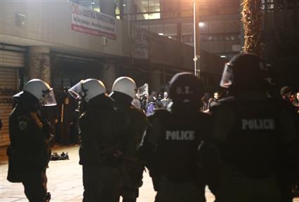 «Κλούβες» των ΜΑΤ καθώς και πολυάριθμες διμοιρίες έχουν κλείσει τον δρόμο και δεν επιτρέπουν στους διαδηλωτές να κινηθούν προς την Ισραηλινή πρεσβεία