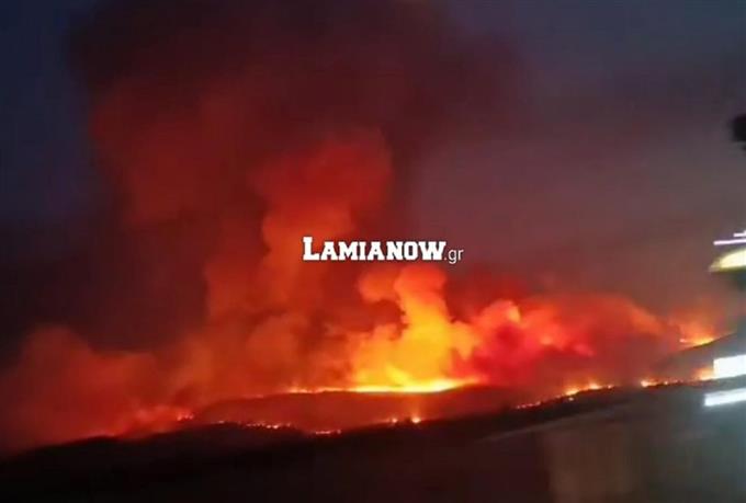 Το πύρινο μέτωπο, που είναι ορατό από την Εθνική Οδό Αθηνών - Λαμίας και το ύψος των διοδίων της Θήβας, δείχνει να έχει επεκταθεί σημαντικά