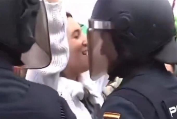 Το φλερτ ανάμεσα σε μια διαδηλώτρια και ενός άντρα των ΜΑΤ την ώρα της πορείας στην Ισπανία έγινε viral