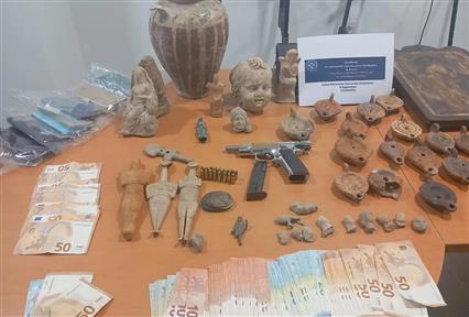 Σε έρευνα που πραγματοποιήθηκε στο σπίτι του συλληφθέντα σε περιοχή της Δράμας κατασχέθηκαν αντικείμενα, τα οποία σύμφωνα με γνωμάτευση αρχαιολόγου της Εφορείας Αρχαιοτήτων Δράμας, υπάγονται στις προστατευτικές διατάξεις της παραπάνω Νομοθεσίας.