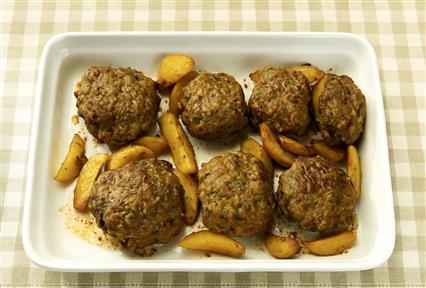 Χορταστικά μπιφτέκια στο ταψί για πρωτεϊνούχο γεύμα. Φρέσκα ντοματίνια και λίγη μουστάρδα θα τα νοστιμίσουν περισσότερο.